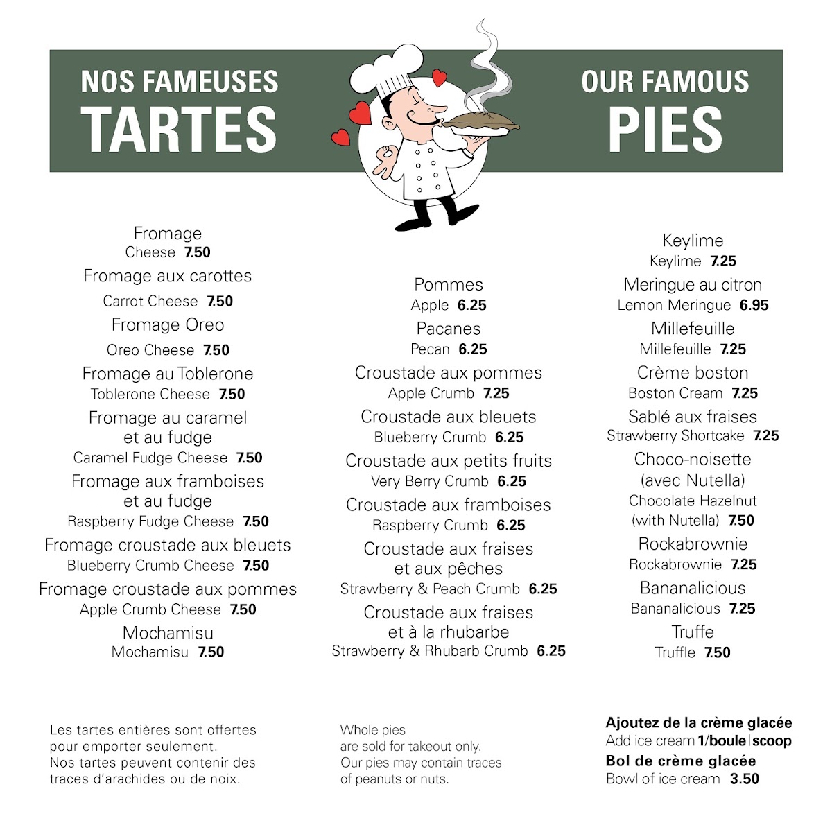 Delicious tarts,cake,pie!! Definitely have their uniqueness. Great for picking up a whole tart for dinners or events. Their specialty coffees are amazing to have with a generous slice of any pies when dinning in. The outdoor terrace area is wonderful to have a drink with friends during the summer months. Or grab a couple slices for takeout & delivery.